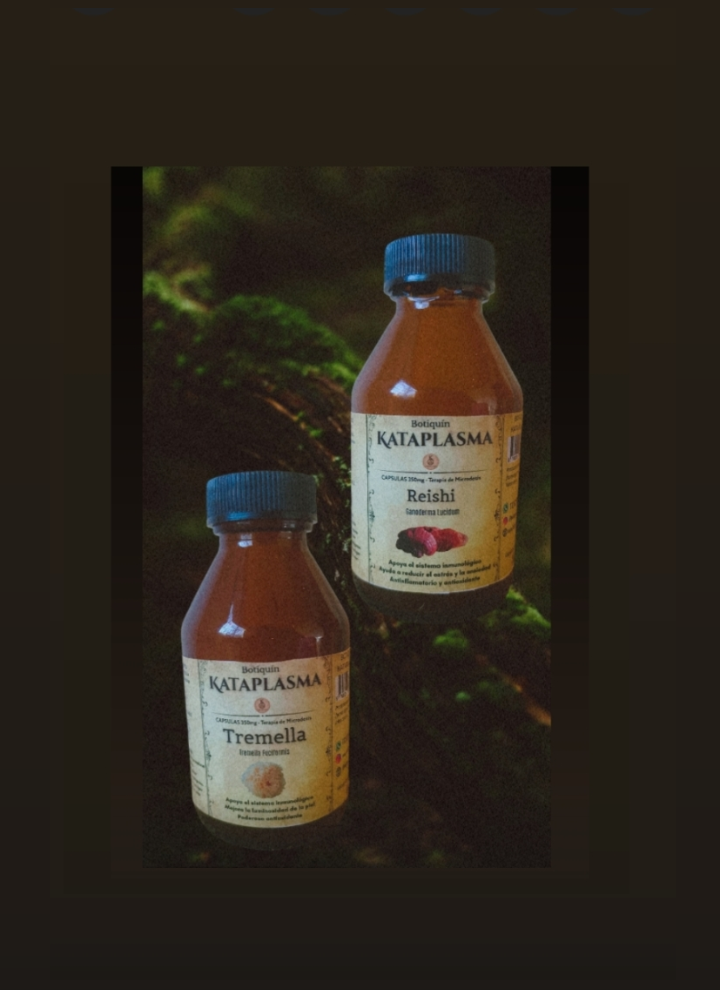 🌸 Presentación: Dos goteros de 45cc (Tremella + Reishi) en envases de vidrio ámbar.